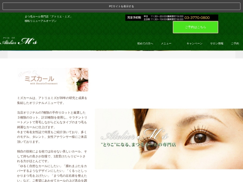 | まつ毛パーマ専門店 アトリエ・ミズ | 7,000円〜 | カスタマイズカール、持続力の高さ |