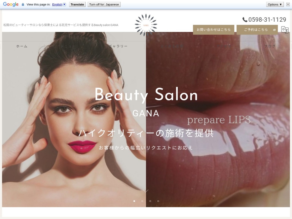 | Beauty salon GANA | オーガニック製品を中心に、肌質に合わせた製品提案が評判 | 〒515-0015 三重県松阪市中央町384−1 OZビル シエテ 405 |